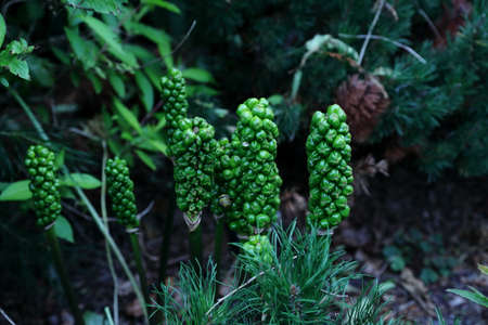 spring equisetum fluviatile, water horsetail, swamp horsetail macro