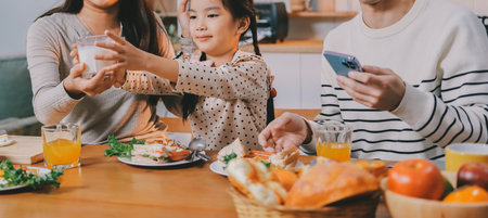 Breakfast is the most important meal of the day. a family having breakfast together.