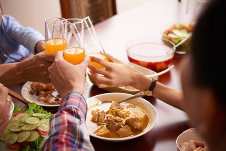 Food and family. Shot of an unrecognizable family having lunch at home.