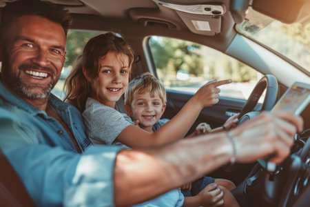 A joyful and happy family is sharing love and delightful moments as they embark on a memorable road trip