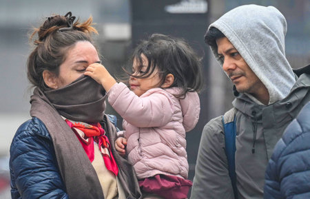 Frozen family in bedroom with lack of heating