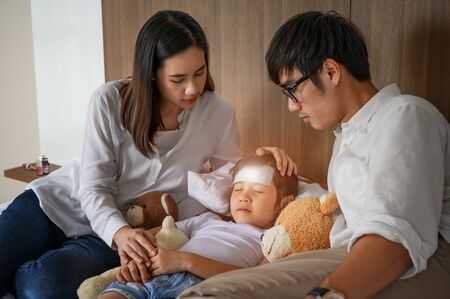 Caring parents take care of their son during illness