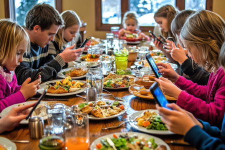 Family Enjoying a Meal Together at a Cozy Restaurant.