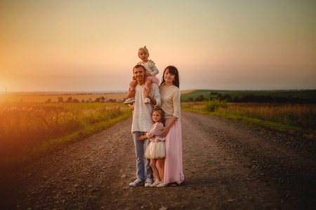 Portrait of a happy and funny young family outdoors.Family lifestyle concept