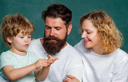 Back to school and home schooling. Parenting Education mathematics concept. Parent taking child to school. School family. School concept.