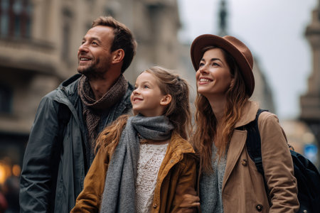 Young happy family travelling to another country on vacation