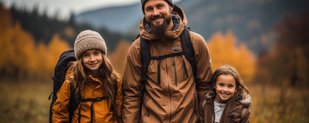 Portrait of a happy father with his kids on a hike in Iceland