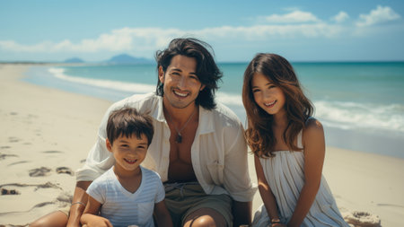 Photo of happy family having fun on the beach. Summer Lifestyle