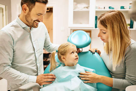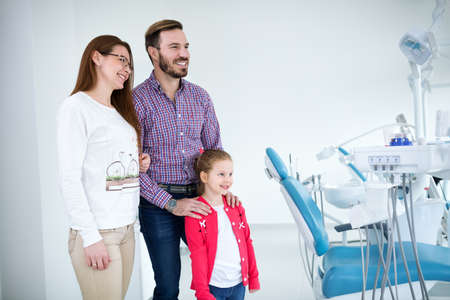 Young family with a child in dentistry