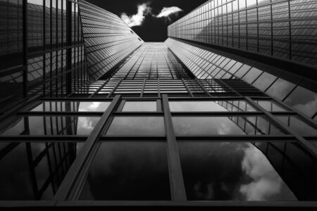 Abstract modern architecture with high contrast black and white tone. Architecture of geometry at glass window - monochrome.