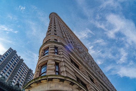 New York City, NY, USA. August 15, 2014: Flat Iron building facade. One of the first skyscrapers ever built.