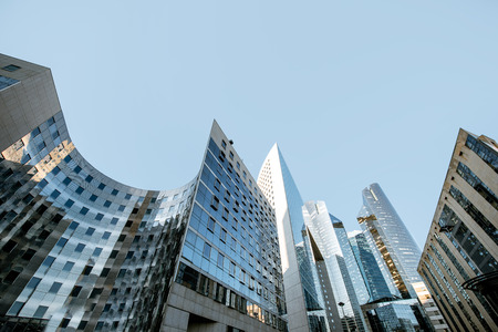 Morning view of La Defense financial district with beautiful skyscrapers in Paris
