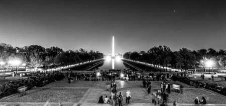 The Reflecting Pool in Washington by night - view from Lincoln Memorial - WASHINGTON DC - COLUMBIA - APRIL 9, 2017