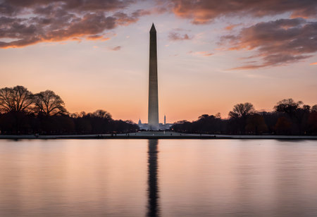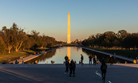 Colorful sunset view of the Washington Monument along the National Mall in District of Columbia USA