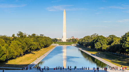 Washington Monument reflection in reflecting pool in Washington, DC.