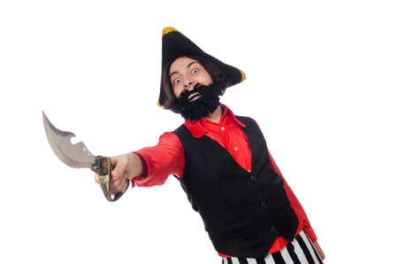 Im the captain of this ship. Shot of a little boy wearing a pirate costume against a white background.