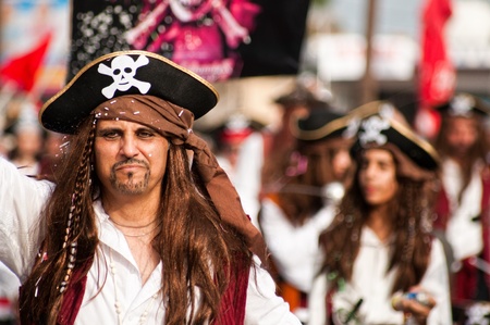 LIMASSOL, CYPRUS - MARCH 6: Participant from Pirate's Theme Group during the Carnival Parade on March 6, 2011 in Limassol, Cyprus.