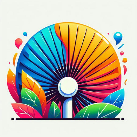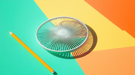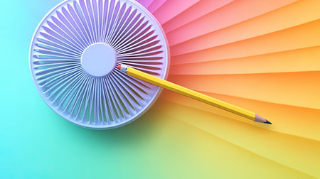 A vibrant composition featuring a colorful background with a circular fan and a yellow pencil, ideal for creative projects and artistic inspiration.