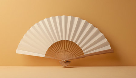 An elegant bamboo fan displayed on a minimalist background, showcasing traditional craftsmanship and natural beauty, perfect for home decor or artistic inspiration.