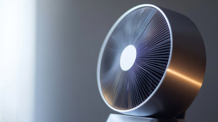 This image showcases a modern air fan with a sleek design, highlighting its elegant circular shape and stylish features, perfect for enhancing home decor.