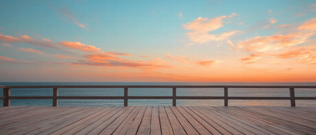 Serene sunset over empty beachfront deck with tranquil ocean views