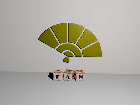 3D illustration of FAN graphics and text made by metallic dice letters for the related meanings of the concept and presentations. background and football