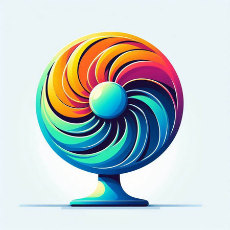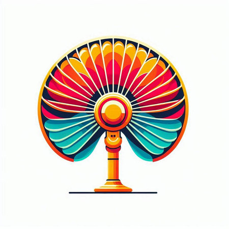 Illustration of a colorful electric fan isolated on a white background.