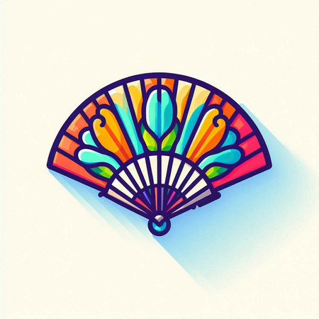 Colorful hand fan icon. Vector illustration. Flat design style.