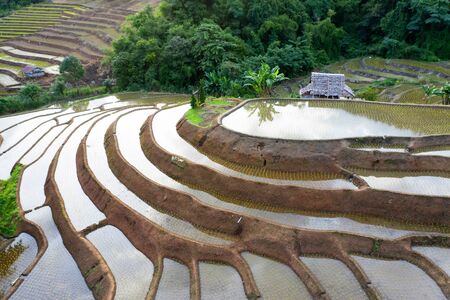 Picturesque view of the terraces sunrise and hope of a good harvest in the golden rice fields