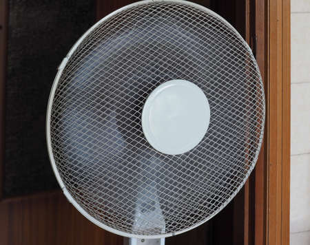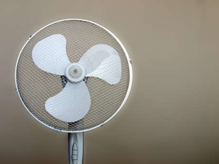 Wind appliance fan summer heat cool metal white electricity air propeller