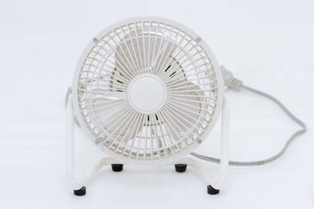 White Fan dirty with dust on white background.