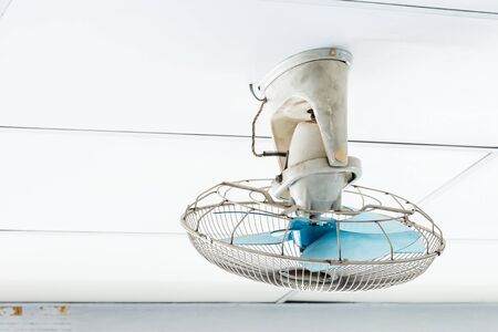 Dirty orbit fan on the ceiling of living room.