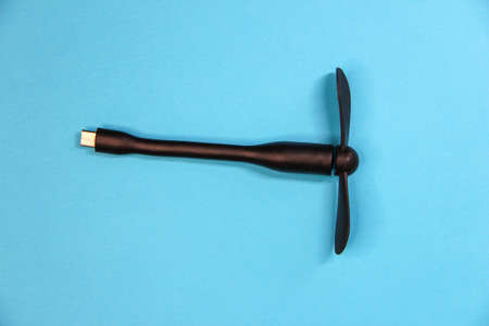 Modern Portable Handheld Fan on Colorful Blue and Yellow Background for Summer Coolness