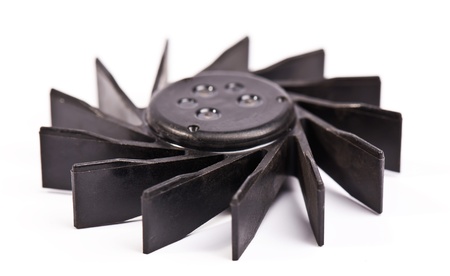 Piece of computer fan isolated on white background with big copy space. Selective focus