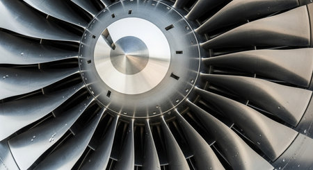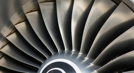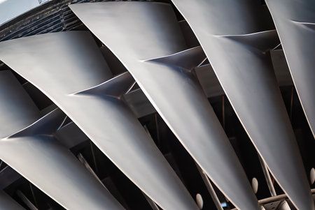 Close-Up of Modern Jet Engine Turbine Blades in Aircraft Industry
