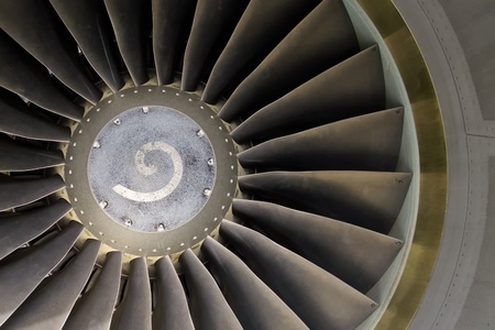 Commercial airplane engine turbine. Closeup view photo
