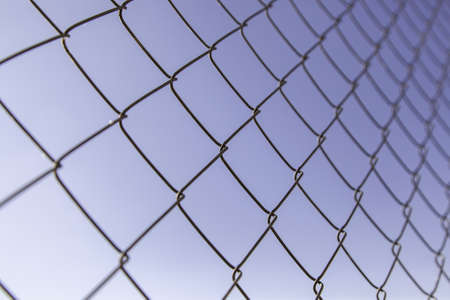 Chain link fence, steel metal industrial pattern in court, selective focus