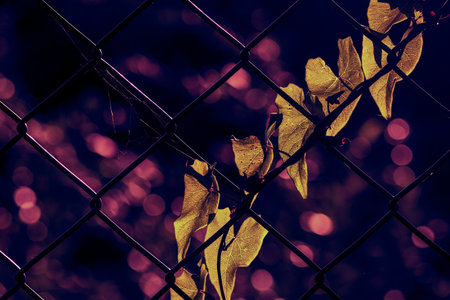 A moody shot of a fence with an out of focus background during the sunset, inspiring with copy space