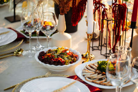 Preparation for Christmas dinner and new eve dinner. Luxury design for a new year celebration.