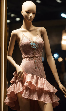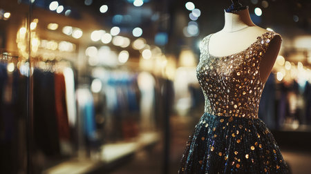 Elegant and luxurious dress showcased at the shopping mall with copy space included