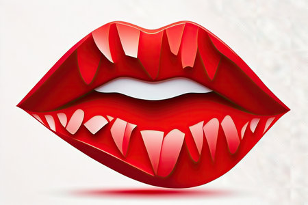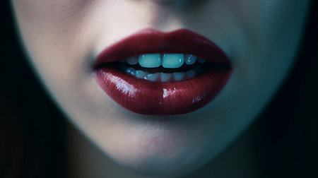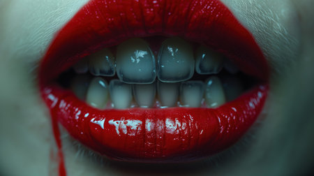 An AI generated illustration of a female vampire's mouth with red lipstick