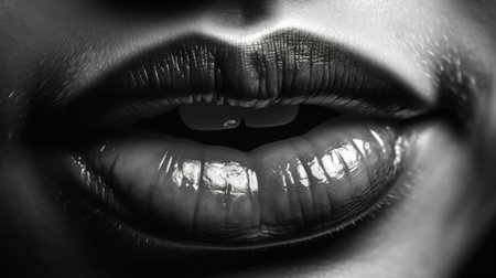 Closeup of a beautiful woman's lips. Black and white.