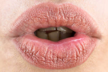 Female lips closeup, air kiss love concept.