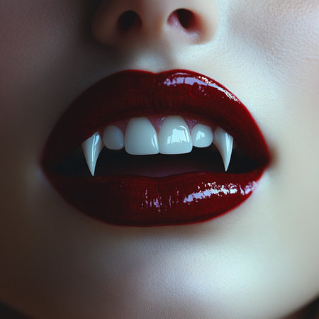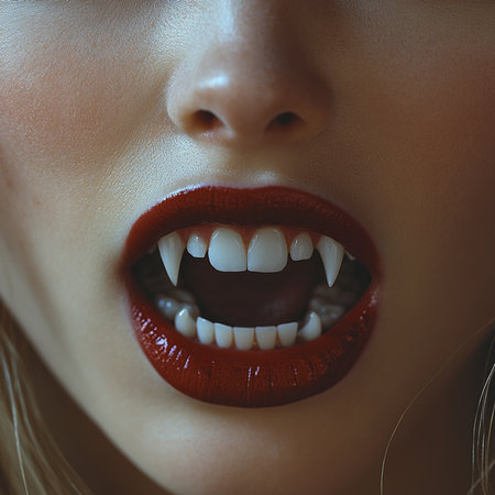 Close-Up of Female Vampire with Sharp Teeth
