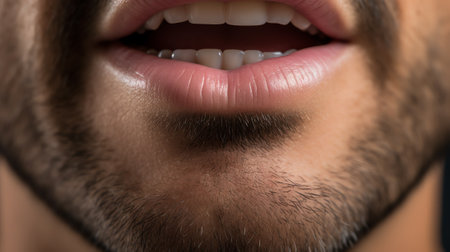 Generative AI closeup shot of man mouth smiling