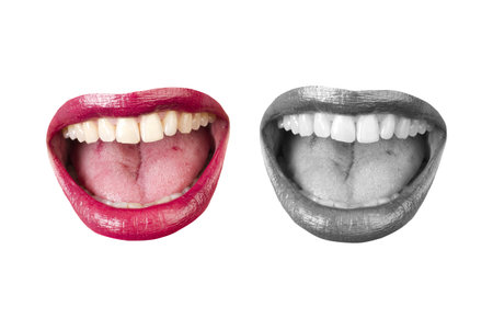 Color and black and white open mouth isolated on a white background