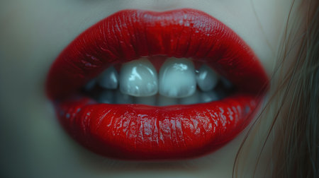 Stunning close-up image showcasing bold red lips, emphasizing rich color and smooth texture against a dark background, perfect for beauty and fashion themes.