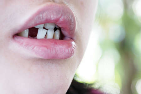 Close-up of a girl's lips and teeth. Macro.