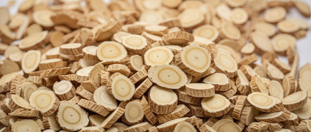 Astragalus, an ancient traditional Chinese medicine herbal medicine, is placed on the weighing pan