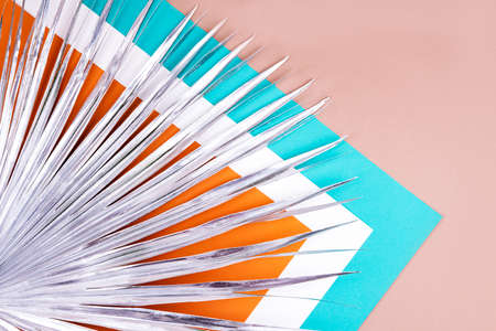 Silver shining palm branch on a colorful geomitric background. Style of 1920th years in modern update.